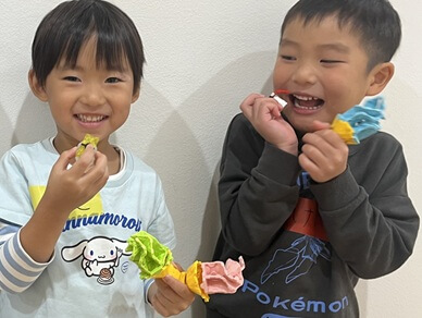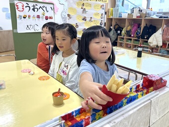 みんなの「大好き」を集めてお店屋さんごっこをしようとしたら、やっぱり出てきた回転ずし!ちょっと足を延ばして「魚べい」を視察しましょう。その結果…