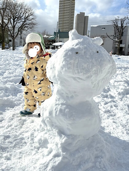 ふかふか雪の日には大きいのが作れるね!大きいのと少し小さいのを組み合わせていく。