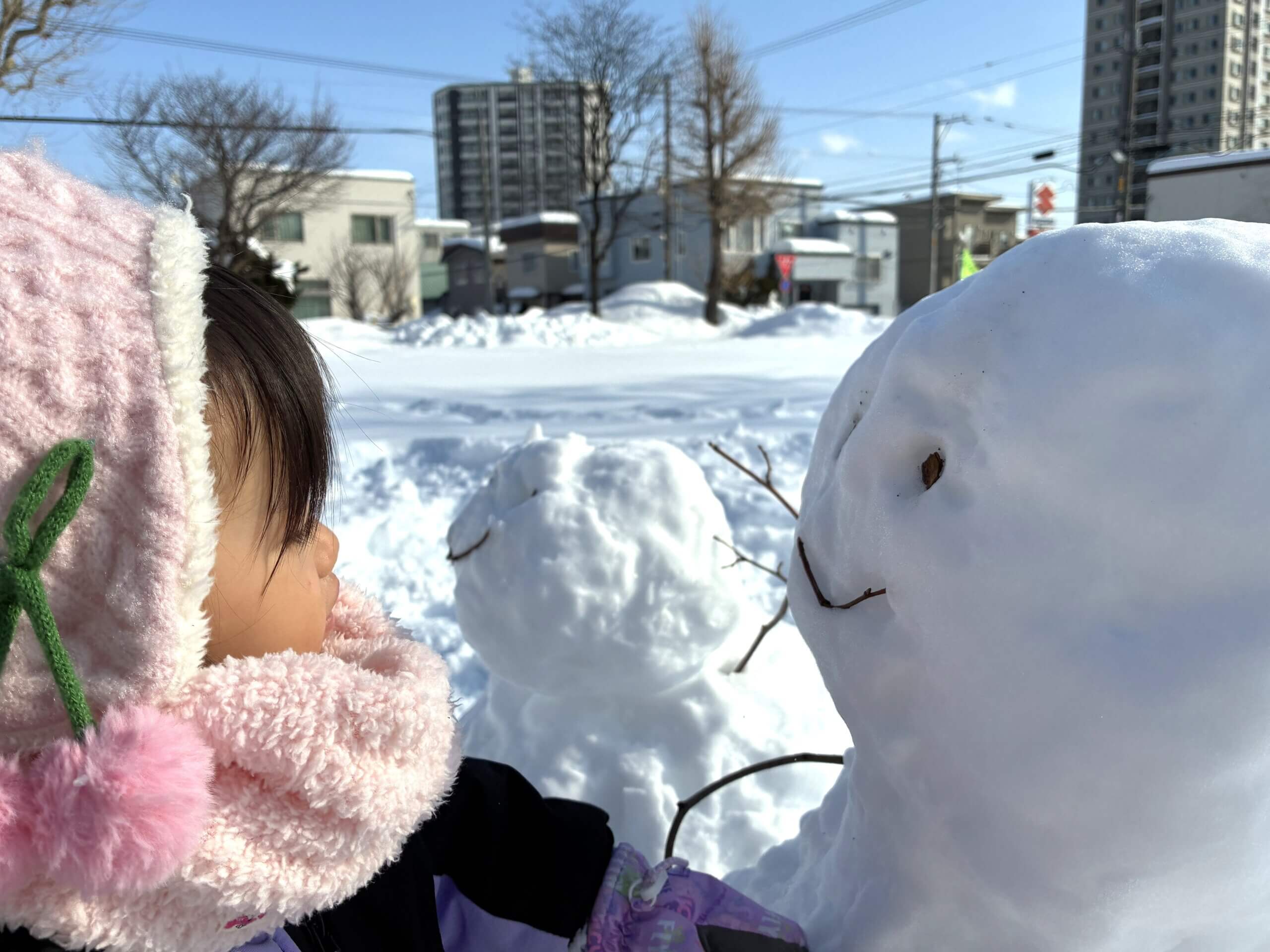 こんな優しい顔の雪だるまにも会いました。