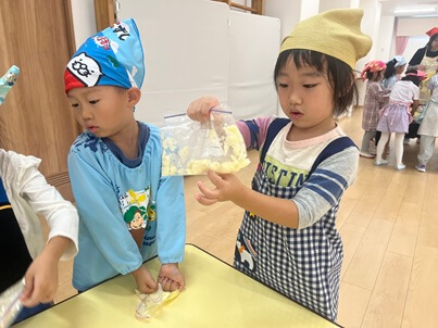 園からのお知らせ 「み」がいっぱい さぁ、おやつの準備を始めよう。今日はとうもろこしだ!上手くいかないので、最初は先生が押さえてくれたけどコツをつかんだら、どんどん剥ける。厚い皮もどんどん薄くなる。「ぜんぶ、むけたよ!」ぎゅうぎゅうづめの実がぷっくりしておいしそう!午後のおや... 2025.09.11 園からのお知らせ